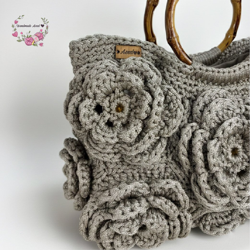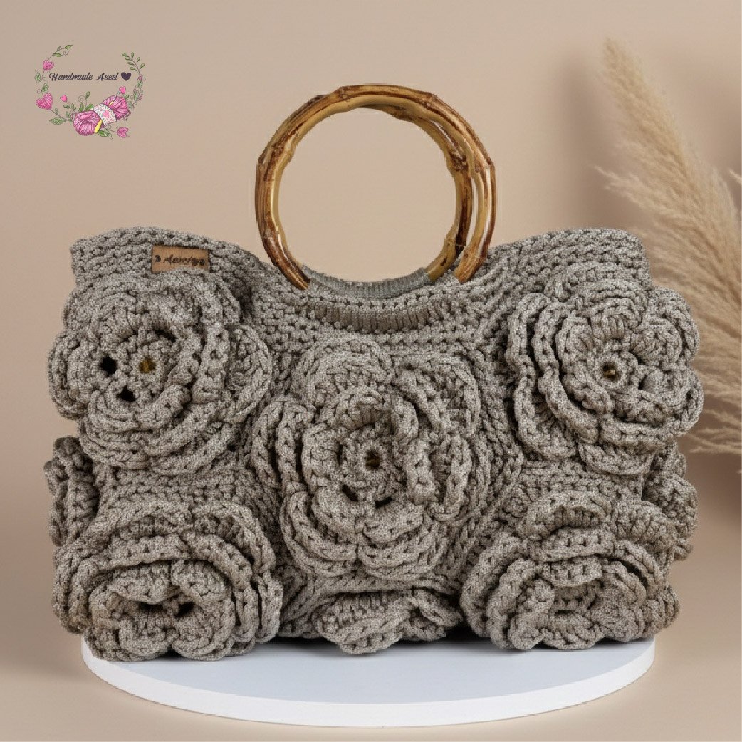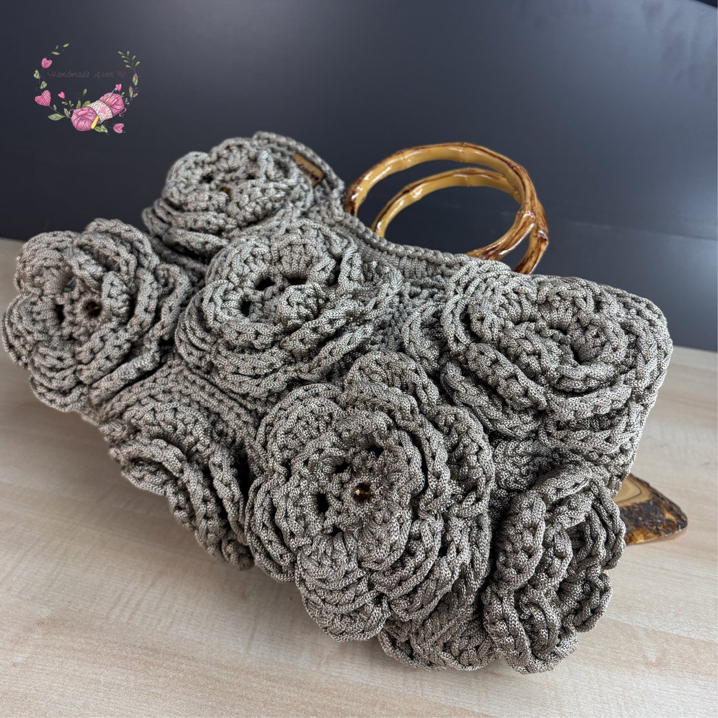 A sophisticated handmade bag adorned with floral designs and honey-colored crystal beads, adding a luxurious and delicate touch. ✨