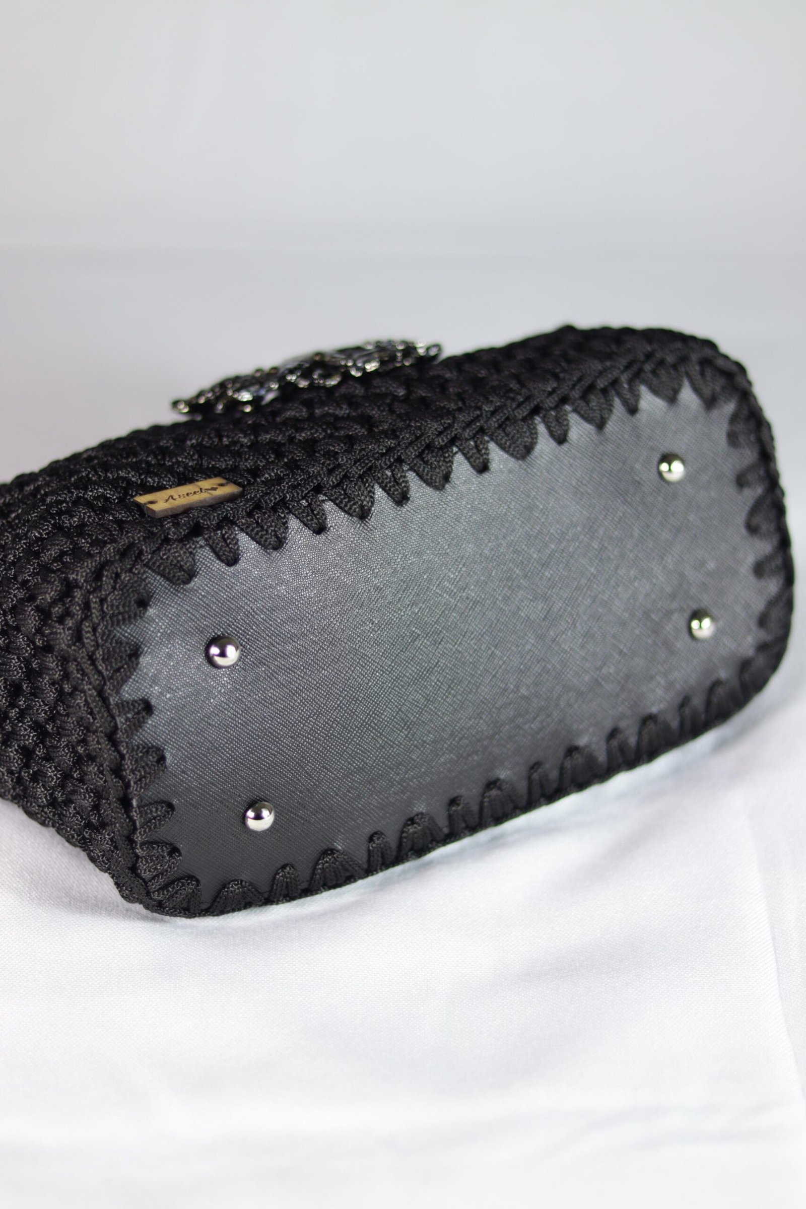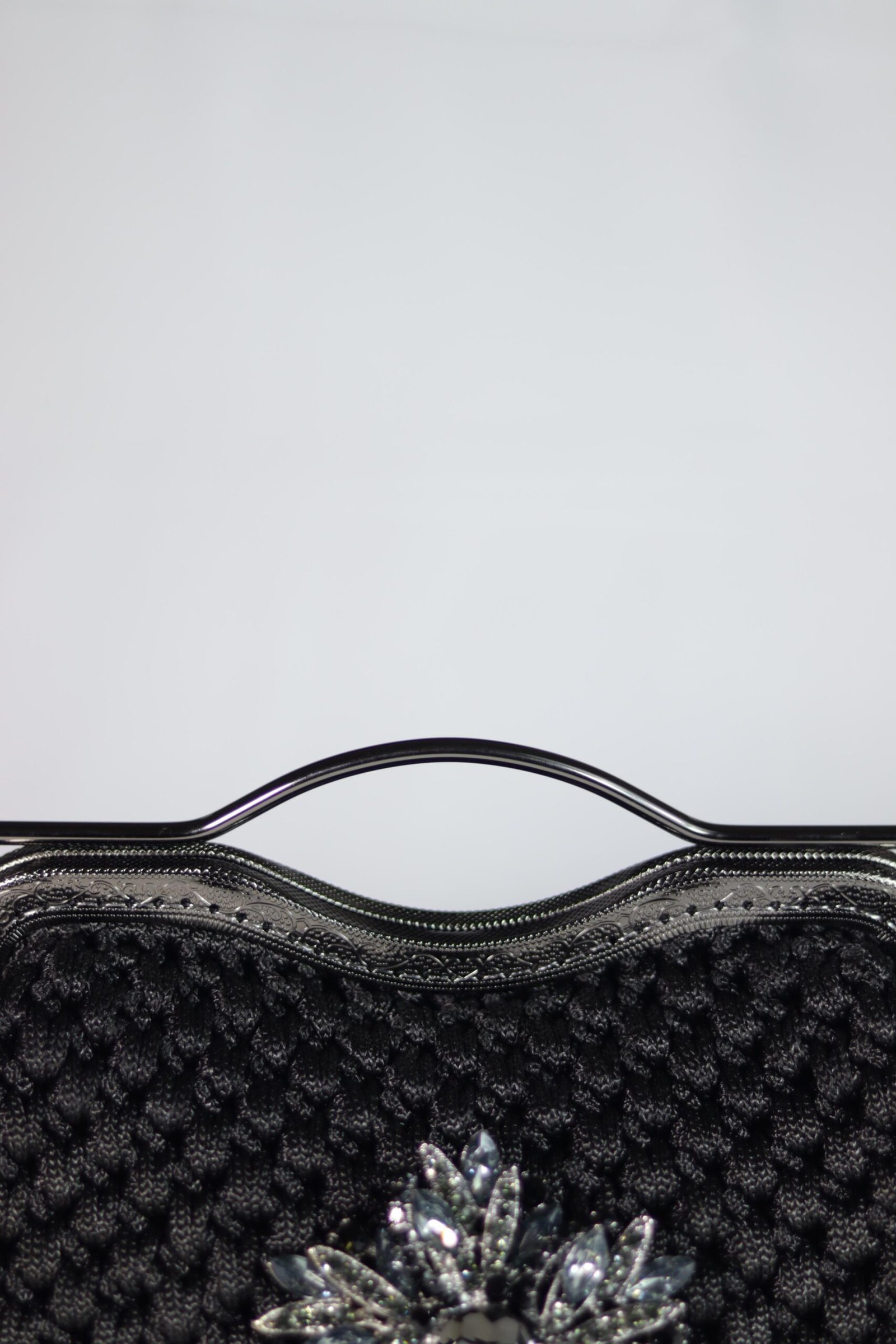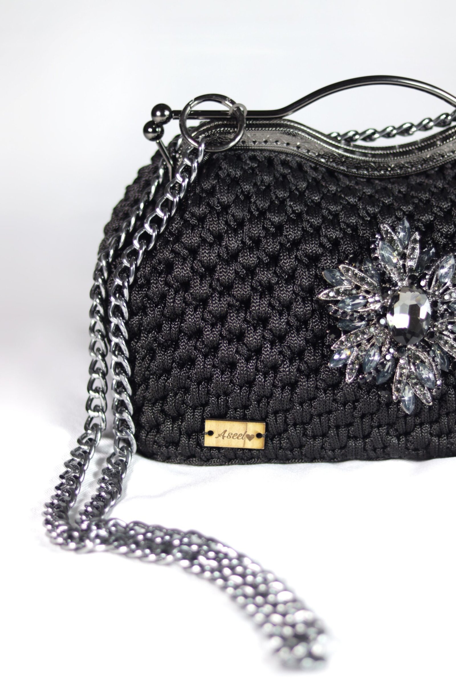 An elegant and luxurious handmade bag featuring a sparkling crystal brooch that adds a striking accent to the design. ✨