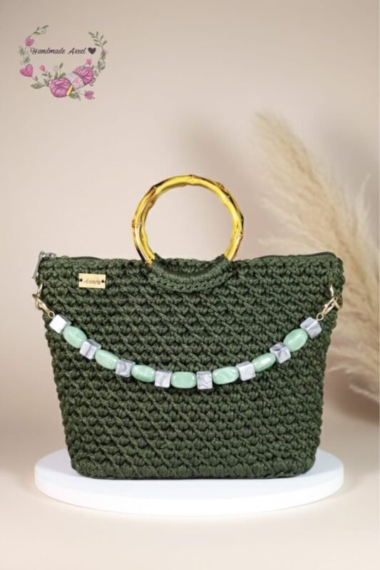 👜 Wooden Handle Bag – Wavy Stone Chain